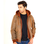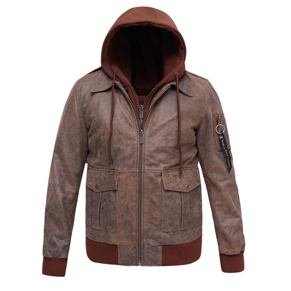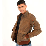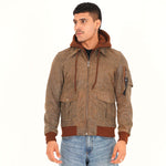 メンズ クラッカーブラウン ボンバーレザーバイカージャケット